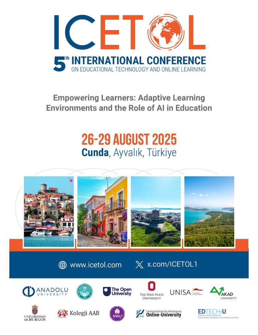 Bandırma Onyedi Eylül Üniversitesi İletişim Fakültesi Halkla İlişkiler ve Reklamcılık Bölümü öğretim üyesi Dr. Aylin AKINLAR ile İstanbul Gelişim Üniversitesi Sağlık Bilimleri Fakültesi Sosyal Hizmet Bölümü öğretim üyesi Dr. Derya KAVGAOĞLU, 26–29 Ağustos 2025 tarihlerinde Ayvalık/Cunda’da düzenlenen 5th International Conference on Educational Technology and Online Learning (ICETOL 2025)’a katılım sağlamışlardır.