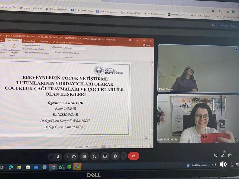 Bandırma Onyedi Eylül Üniversitesi, İletişim Fakültesi, Halkla İlişkiler ve Reklamcılık Bölümünden Dr. Öğretim Üyesi Aylin AKINLAR, 6 Mayıs 2025 tarihinde, İstanbul Gelişim Üniversitesi Çocuk Gelişimi Yüksek Lisans Programı öğrencisi Pınar YANPAR’ın “Ebeveynlerin Çocuk Yetiştirme Tutumlarının Yordayıcıları Olarak Çocukluk Çağı Travmaları ve Çocukları ile Olan İlişkileri” başlıklı tezinde eş tez danışmanlığı yapmıştır.