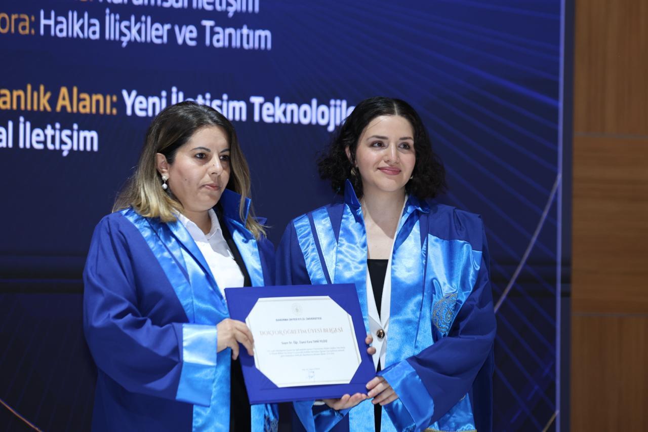 Akademik yükseltme süreci kapsamında ise; 2024 ve 2025 yıllarında profesör, doçent ve dr. öğretim üyesi unvanlarını almaya hak kazanan öğretim üyelerimize belgeleri takdim edildi.