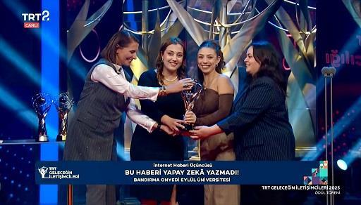 Haber Yayıncılığı (İnternet Haberi) kategorisinde, Doktora Öğrencisi Zafer Yılmaz danışmanlığındaki öğrencilerimiz Sude TOPUZ, Elif KIN ve Beyza YURTTUTAN tarafından hazırlanan "Bu Haberi Yapay Zeka Yazmadı!" başlıklı proje, Bronz Ödül'e (Üçüncülük) layık görüldü.
